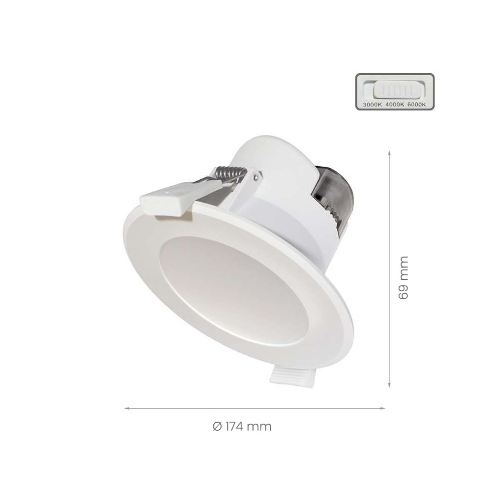 Durata de viata 30.000 ore Putere 17 W Voltaj/Frecventa 220-240V/AC,50 Hertz Caracteristicile fotometrice Culoarea luminii 3 in 1 (Rece/Natural/Cald) Lumina generata 1600*1700*1700 lumeni Ungiul Fasciculului 90 grade Material Plastic Culoare Alb Dimensiuni 174*69 mm Rata IP IP44 Conditii de utilizare -20/+45 grade C Garantie 3 ani