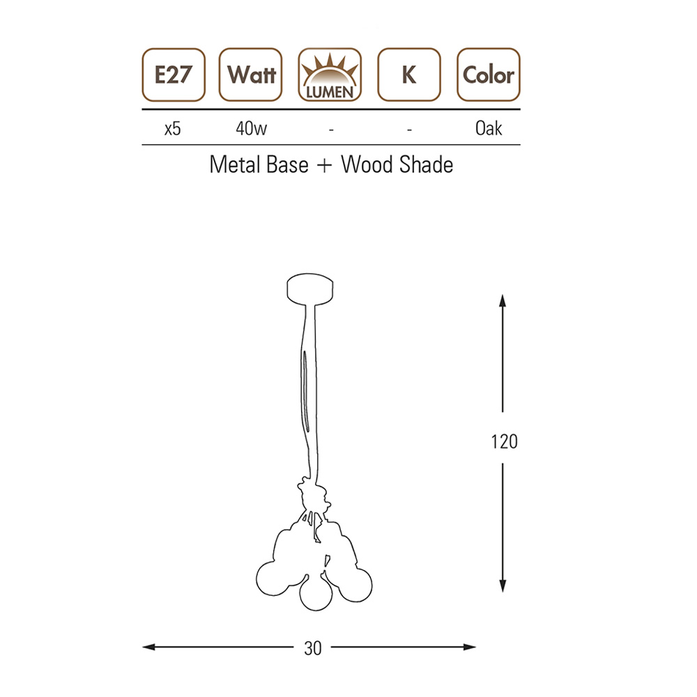 Pendul LED Designer Lemn 10W, 3000K, D600