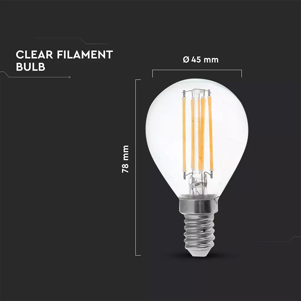 Bec LED - 4W, Filament, E14, P45, 6000K
