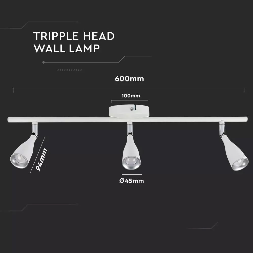 Lampa de Perete 18W cu 3 Reflectoare, Lumina Calda, Corp Alb