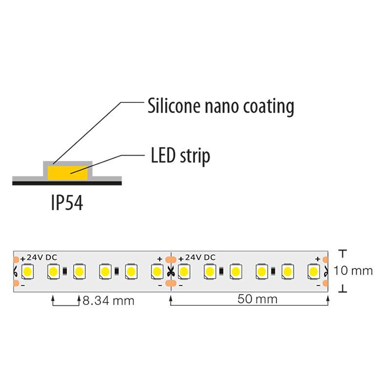 Lungimea pentru fiecare rolă este de 5 m, 24 V DC. Rata de protecție IP54 este obținută prin utilizarea unui strat de silicon Nano.
