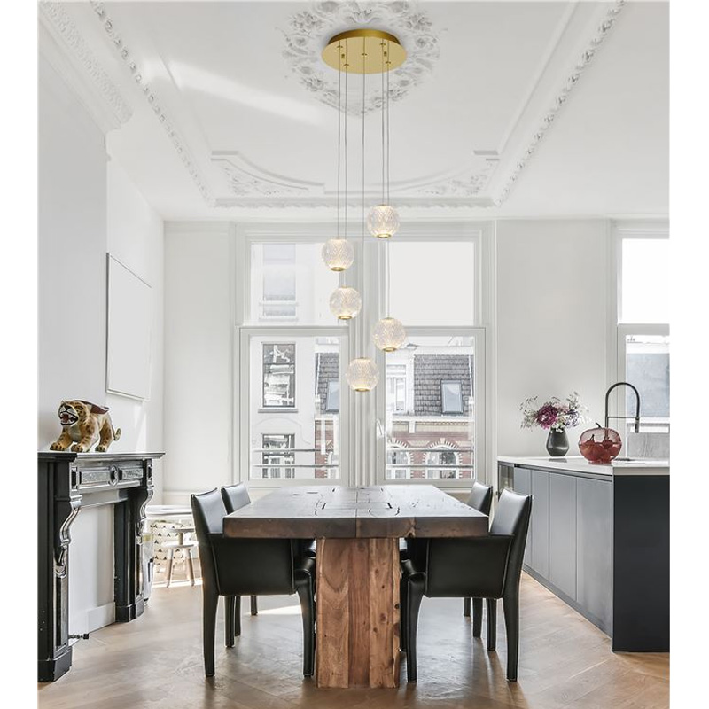 Lampă suspendată din metal auriu și cristale 70W LED, 6351Lm, 3500K, IP20