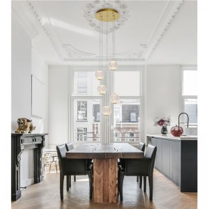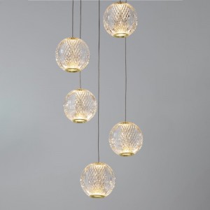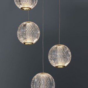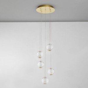 Candelabru cu 8 Brate din Metal si Boluri de Sticla, Soclu E27 AURIU