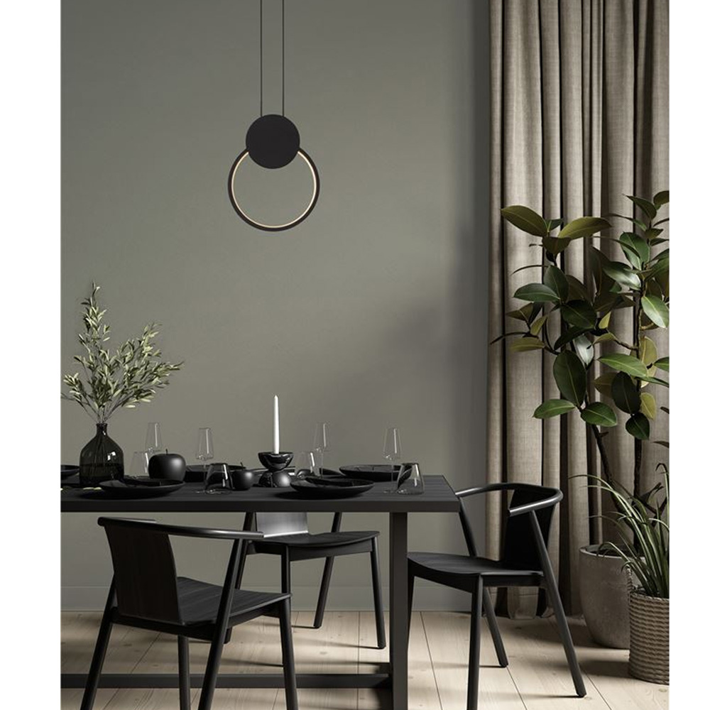Pendul Negru Modern cu Partea Superioara din Lemn, Ø350