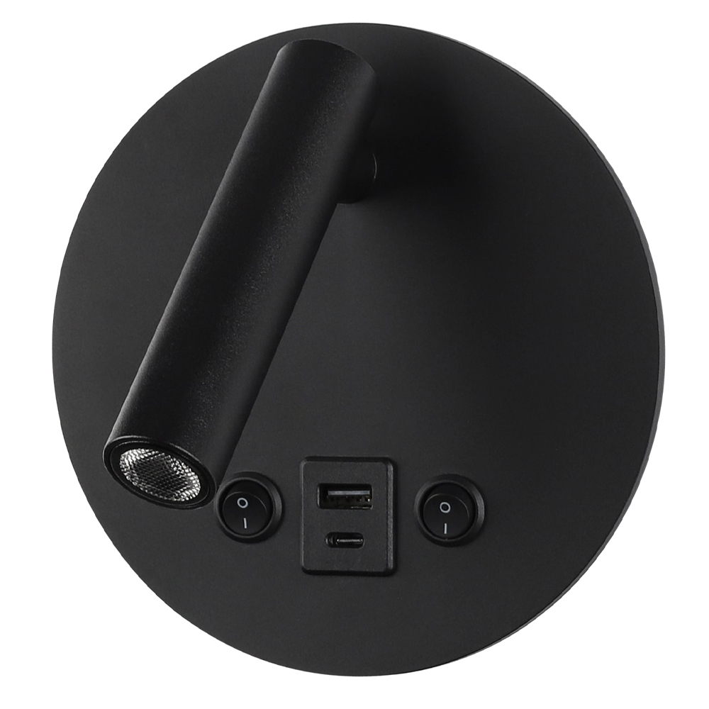 Lampa LED de Perete Orientabila 6W, Lumina Calda, Corp Negru