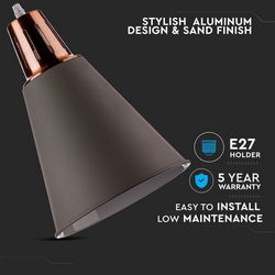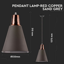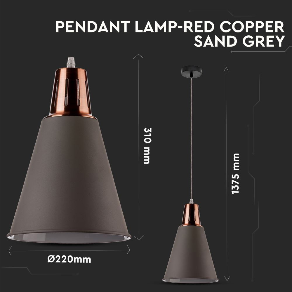 Tip de soclu E27 Date electrice Putere Max. 60W Tensiune de intrare AC: 220-240V Frecventa 50Hz Detalii corp Tip Pendul cu suport Material Aluminiu, Finisaj nisip Capabilitati Compatibilitatea Becuri E27, NU sunt incluse Dimimensiuni Marime 220 x 310 x 1375 mm Lungimea cablului 1 m