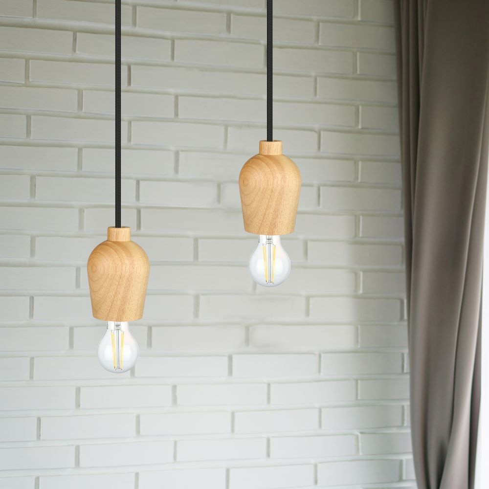 Caracteristicile Corpului de Iluminat Soclu E27 Tensiune 220-240V,50Hz Dimensiuni 73*102*100 mm Lumngime cu tot cu fir 1000 MM Becuri Becuri E27, NU sunt incluse Compatibilitati Forma Becului Compatibil cu A60/67, ST- 64 & Seria becurilor de tip glob Montaj pe Tavan Pendul cu suport Alte Caracteristici Serie Suport din lemn Culoare Negru Material Lemn Putere Max 60W Nu palpaie Marca Multibrand
