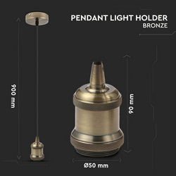 Soclu E27 Serie Suport din Metal Putere Maxim 60 W Tensiune/ Frecventa 220-240V.AC,50 Hertz Material Metal Culoare corp Bronz Tip Lampa Holder Compatibilitate Becuri E27, Nu sunt incuse Dimensiuni 90*50*900 mm Calitate Premium